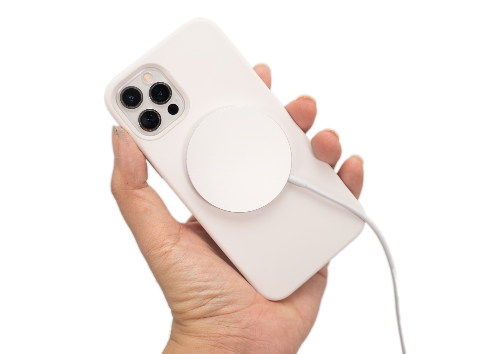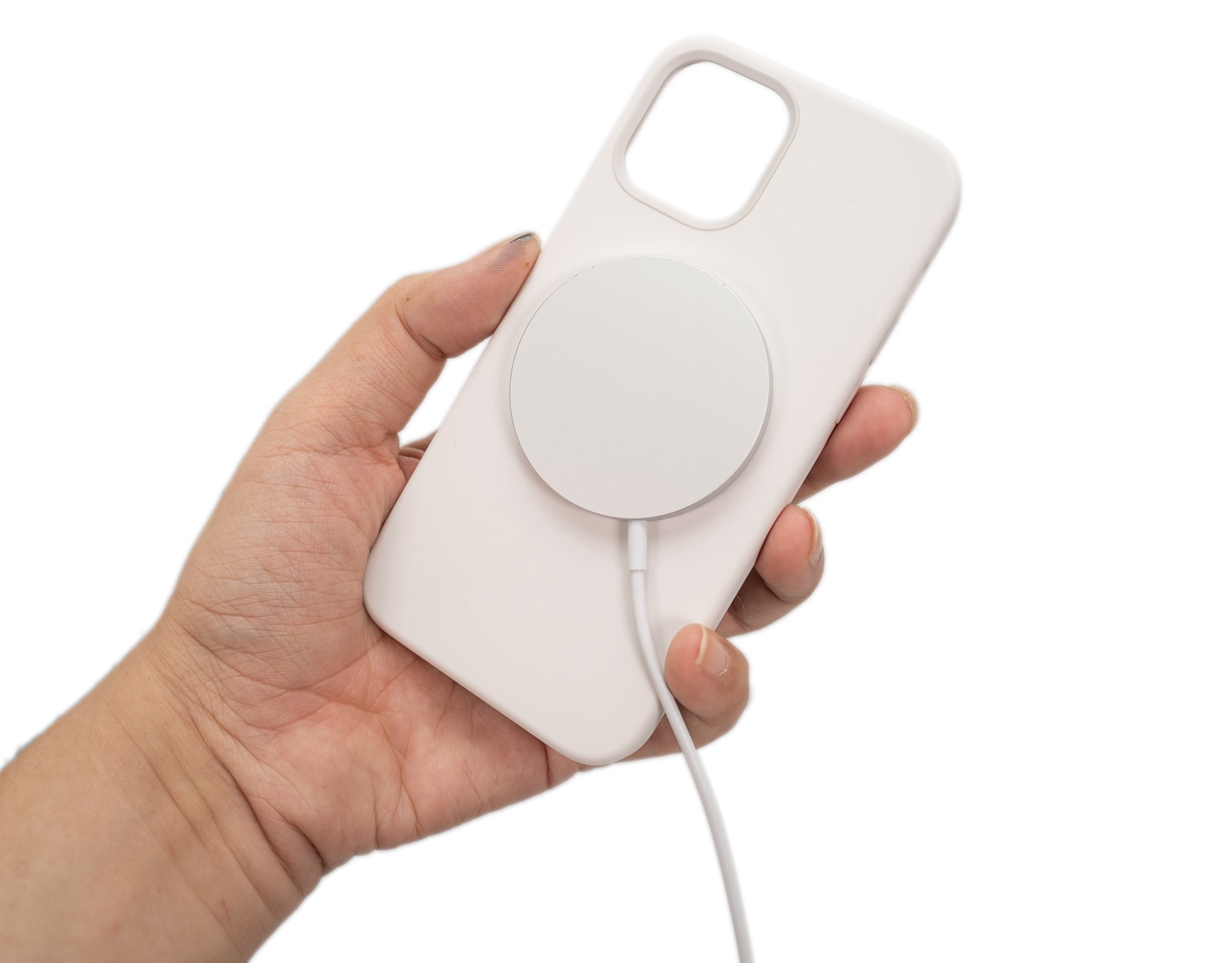 特別要說其實 MagSafe 無線充電器的設計和過去大多磁吸配件是有所不同的,MagSafe 無線充電器釋手基本身和充電器都是有磁石的設計,然後官方保護殼中間則還有鐵片(導磁片)的設計,因使此和官方手機殼安裝使用時並不會因為手機殼的厚度降低了吸力,這也是 MagSafe 無線充電器整個設計環節阿輝覺得非常優異的地方,未來除原廠保護殼之外,應該也會越來越多第三方配件廠商加入。