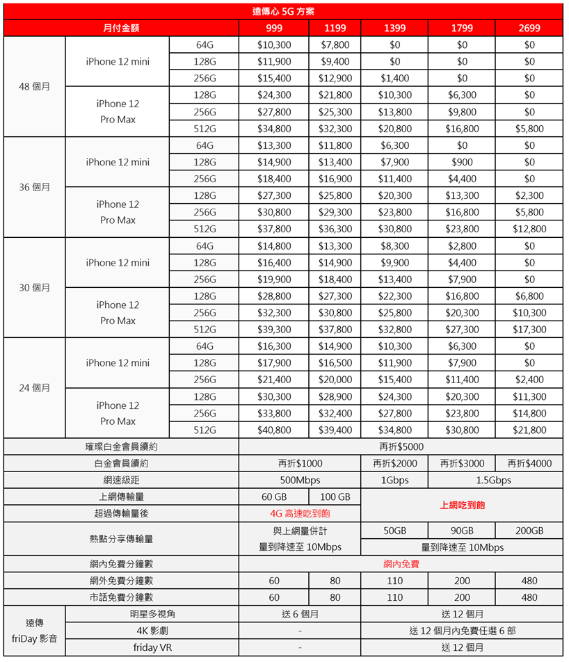 遠傳心 5G 方案 iPhone 12 mini 、 iPhone 12 Pro Max 資費