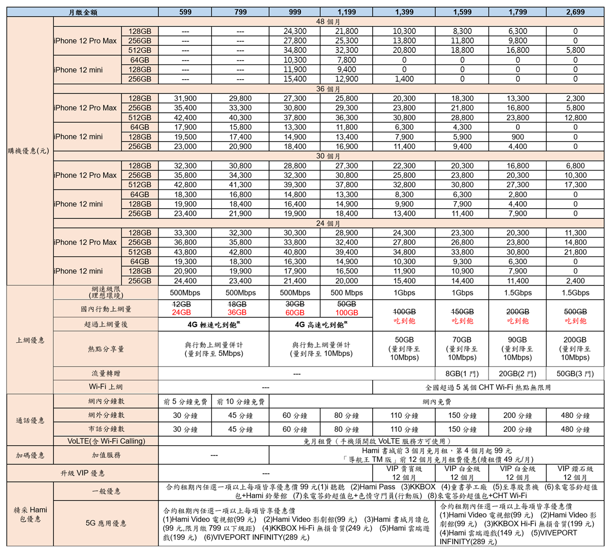 中華電信公布 iPhone 12 Pro Max 、 iPhone 12 mini 購機資費 頂規 5G 旗艦新機 iPhone 12Pro Max 專案價 0 元入手