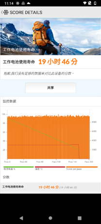 電力實測部分,Desire 20+內建電池容量為 5000 mAh,實測電力部分以 PCMARK 做標準測試,測試 80% ~ 20% 間的電力運行,模擬上網、工作、遊戲的混合應用,測試結果為 19 小時 46 分鐘,測試方式與標準可以參考這篇說明,可以說大概是因為大容量電池 + 省電處理器 + 省電的螢幕,讓 HTC Desire 20+成為目前阿輝測試手機中電力續航成績第一的手機!