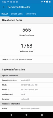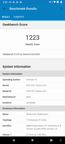 Desire 20+ 採用高通 720G 處理器與 6GB 內建記憶體的規格配置,更多資料也可以阿輝資料庫 https://reurl.cc/MxdjK 內有大量阿輝多年測試手機/平板的實測數據,可以給大家作為對照參考使用。