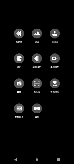 除了 15 種 AI 場景識別之外,也可以點選梗多模式內有慢動作、全景、GIF動畫、掃描QRCode、專業模式等模式可以使用,不過老實說超廣角的項目竟然是在模式選擇中,和大多數手機相比這有點反人類,另外也突顯出HTC手機目前介面有些混亂沒有統一UI介面的問題。