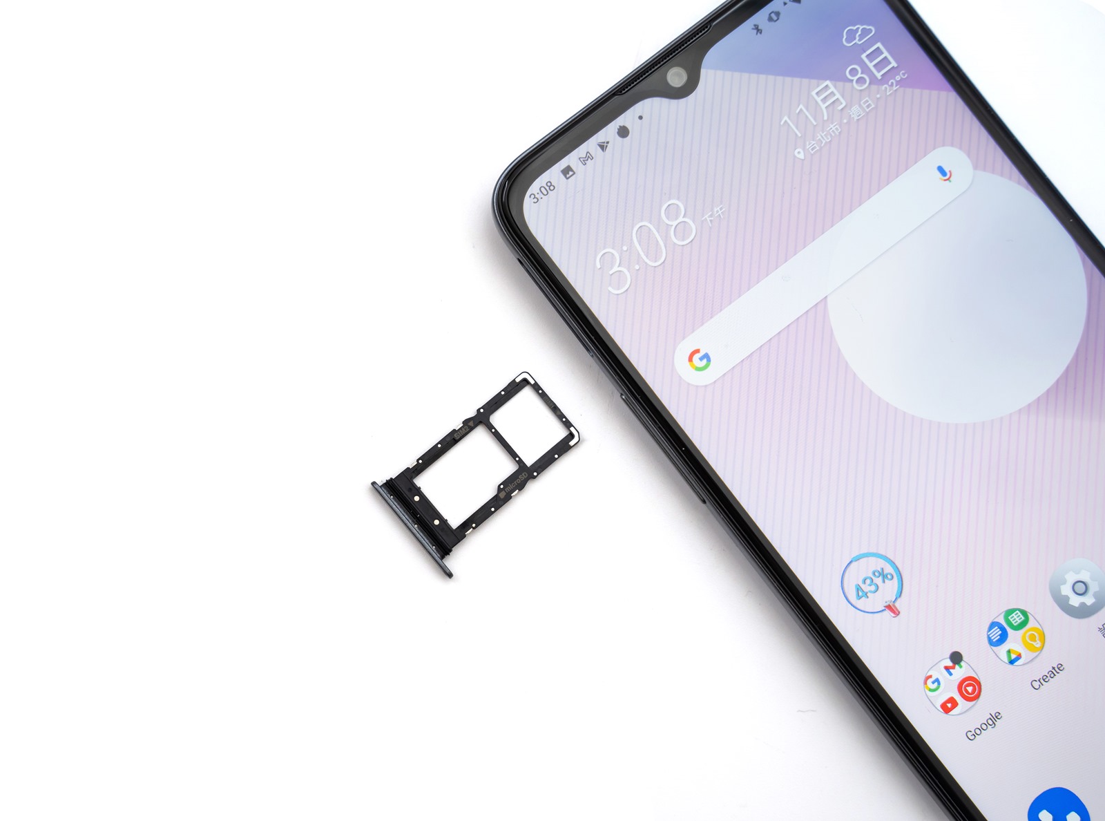 位於機身左上角的 SIM 卡插槽採用三選二卡槽的設計,SIM2 與 MicroSD 記憶卡共用,網路部份 4G 支援台灣全頻段,MicroSD 最大可以擴充 2TB 空間,搭配內建 128GB 儲存空間不用擔心不夠使用的問題。