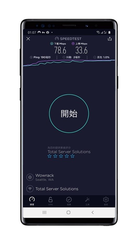 過去有用過 VPN 的朋友們,相信對坊間許多 VPN 的品質感到害怕吧?能不能連得上是一個問題,連上之後網路速度可能慢的像烏龜一樣,這時候搞不好還覺得不要連 VPN 比較好。這些狀況,其實在NordVPN是不會發生的喔。像 NordVPN 這種主打無限流量又高網速的 VPN,其實相信也有許多人好奇他的網路連線品質,阿輝實際透過手機安裝 APP 、連線到 NordVPN 內 US 美國 的伺服器,透過 SpeedTest 來進行測試,測得網路速度下載為 78.6mb 、上傳為 33.6mb,這樣的實測速度實在太驚人了!根本幾乎快和阿輝本地的光世代網路極速非常非常接近!