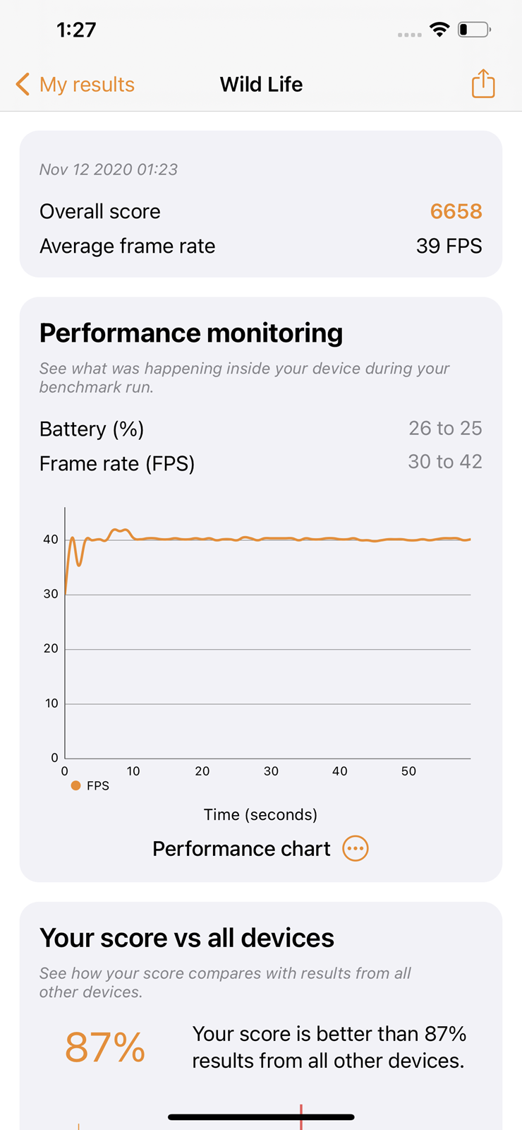 - 一小時遊戲測試 (PUBG Mobile): 一小時耗電 12%