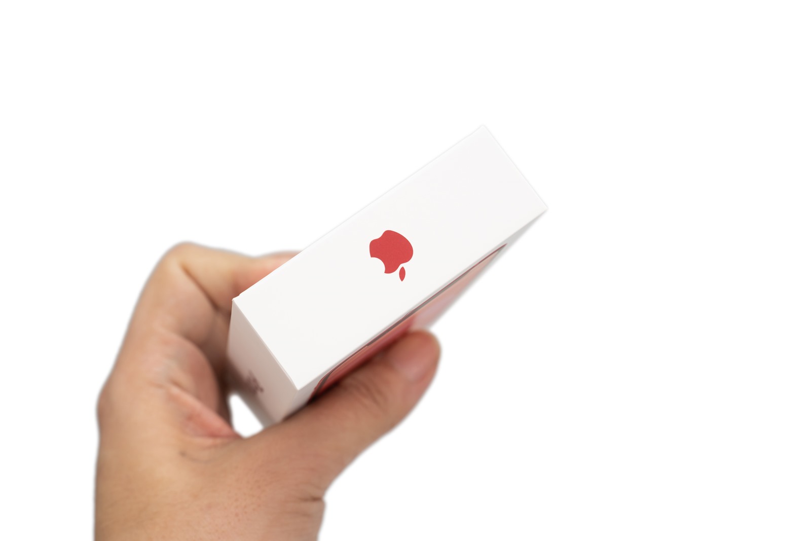 內部簡單的說明小卡、退卡針,也有附上小 Apple 貼紙的傳統一樣保留,不過有點有意思的就是這些小卡也都變小了,另外特別要說一下這是 RED 版本才有的 (PRODUCT)RED™ 紙卡,RED 系列會有固定資助愛滋醫療研究的特點,身為 (RED)® 的合作夥伴,Apple 會將您購買的 iPhone 的部分金額捐贈給 Global Fund 以援助 HIV/AIDS 計畫,共創無愛滋的世代。