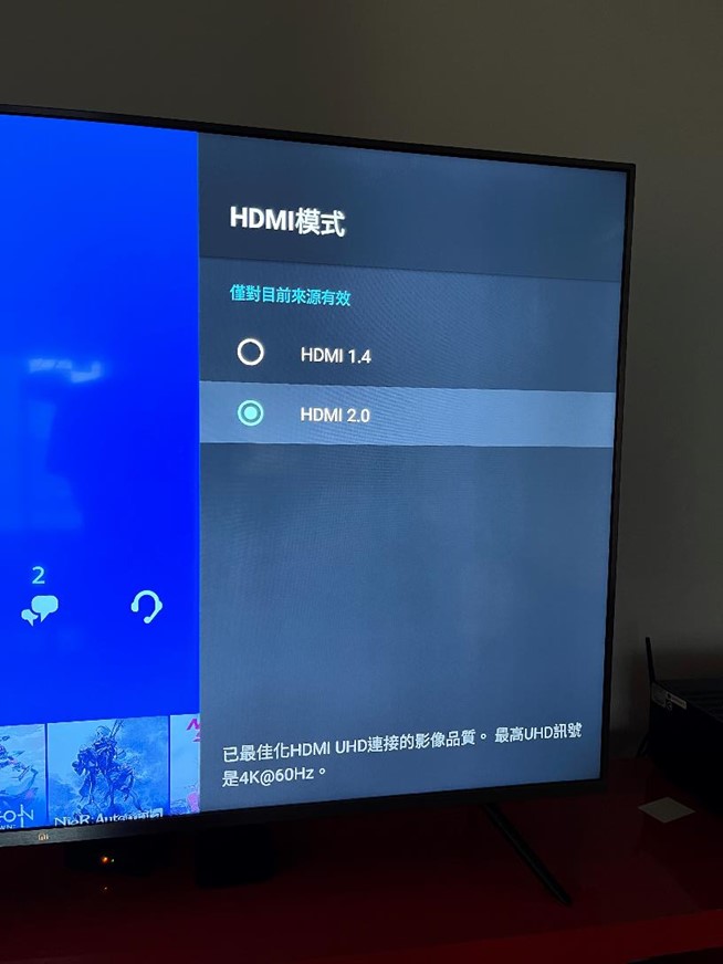 這裡稍微提醒一下大家,像是連接 PS4 Pro 或是緊接要來 PS5 等支援 4K60P HDR 高解析度的遊戲機等設備時,需要使用配合的線材,並且在 HDMI 設定中開啟 HDMI 2.0 的連線輸出模式,才會開啟完整的 4K 60P 與 HDR 同時支援的效果。