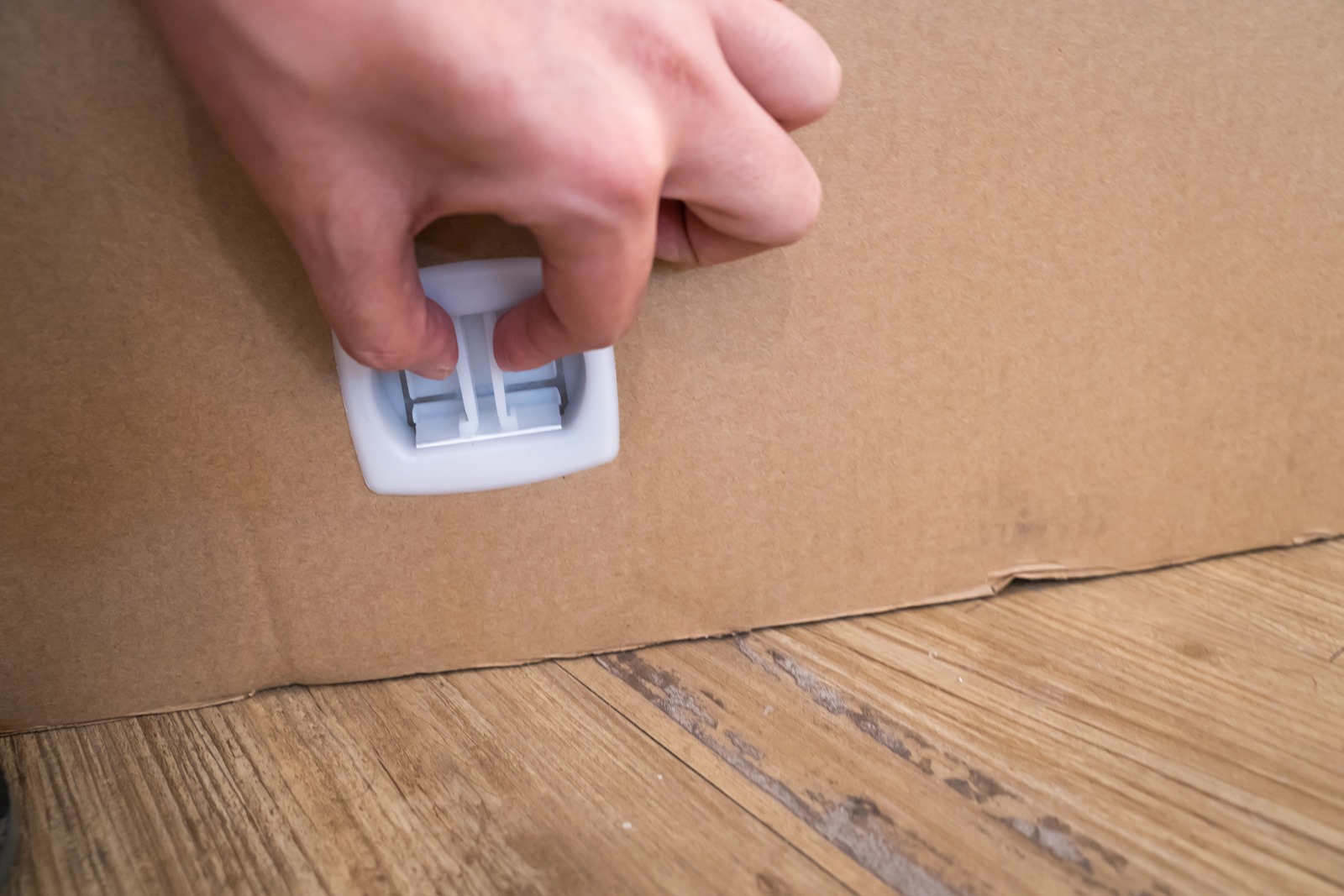 小米智慧顯示器的機身尺寸寬度大約是 145 公分、高 83 公分左右,外箱的側邊印有箱體置放的建議說明,以及標示有電視前方的方向是哪一側。確認好方位後就從靠近箱底白色的固定扣捏下後就可以鬆開外箱,上拉就可以讓外箱分離開來。這邊要順帶一提的是,購買小米電視是有包含專業技師免費到府基本安裝的服務的,阿輝強力建議專業的事情就讓專業的人處理,買了小米電視就等技師上門幫你安裝與測試吧!當然如果需要壁掛或其他懸吊安裝的話則會另外收費,各種額外的安裝方式及收費標準也在官網上標示的相當清楚,有需要的人也可以先到官網上做確認。