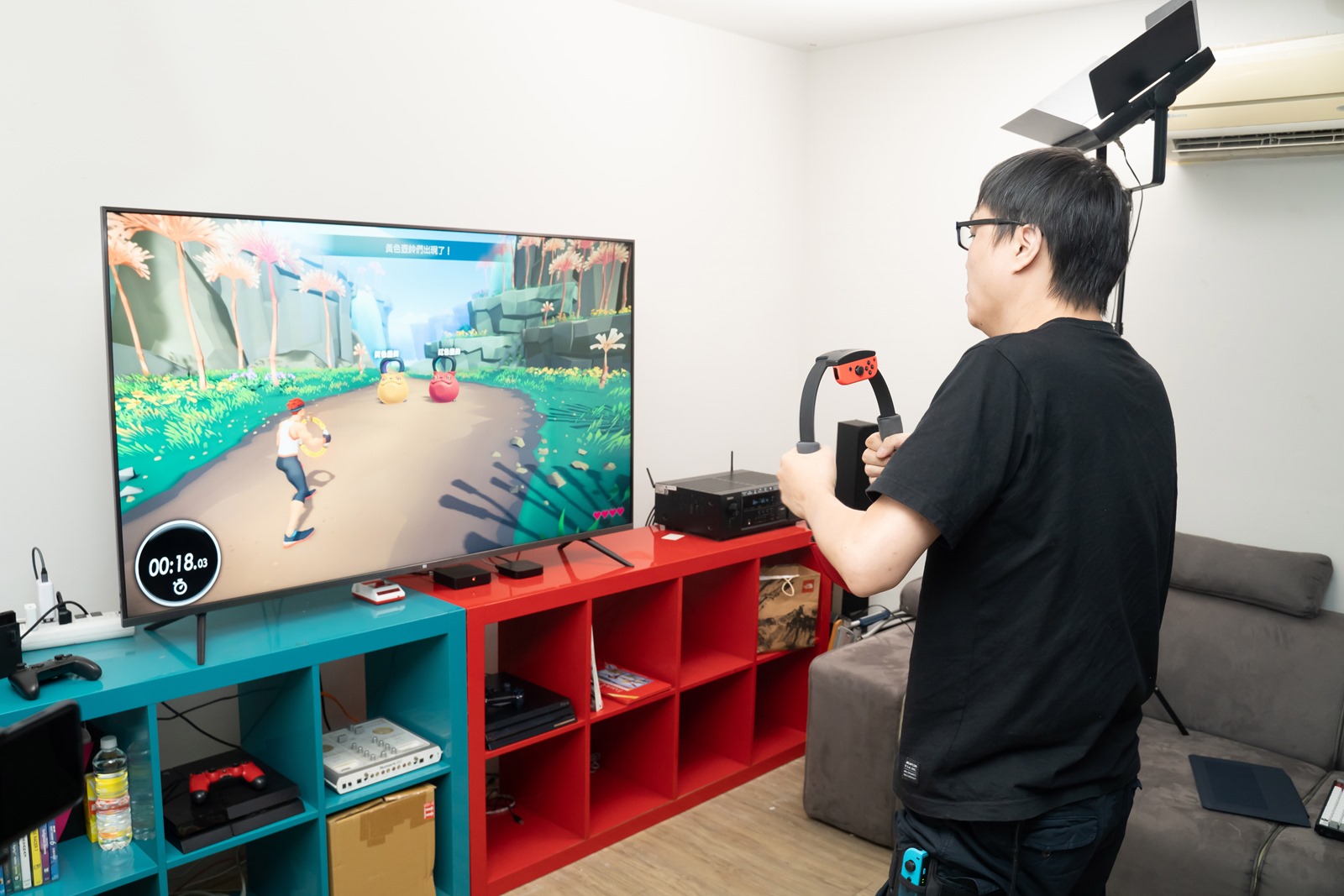 接上 switch 玩健身環更是沒有問題,在跑步前進的畫面時顯示的畫質也相當穩定,不會讓人有頭暈感的狀況發生,色彩表現也很棒!