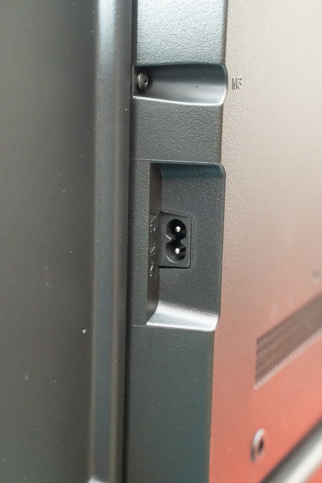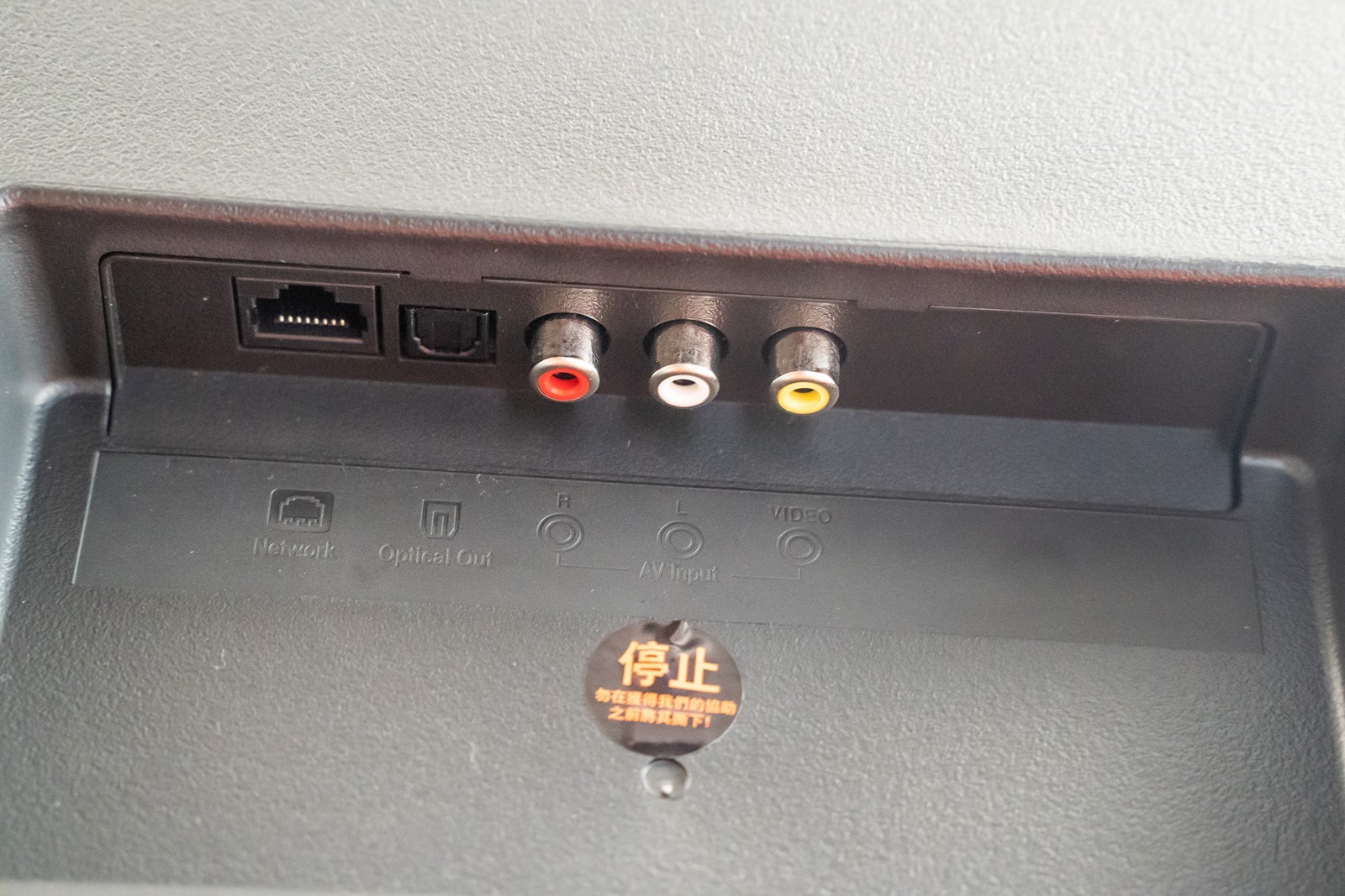 下方的部份則是有一個有線網路連接孔、一個光纖孔和 AV 端子的音源及影像輸入孔和可使用,小米電視畢竟是一台智慧顯示器,連網的部份除了可連接實體網路孔以外,當然也支援 2.4 GHz 和 5GHz 的 WIFI 連接能力,阿輝自己是習慣使用無線網路為主,方便度較高;但若對網路穩定度要求較高的話,就會建議直接插上實體網路線。