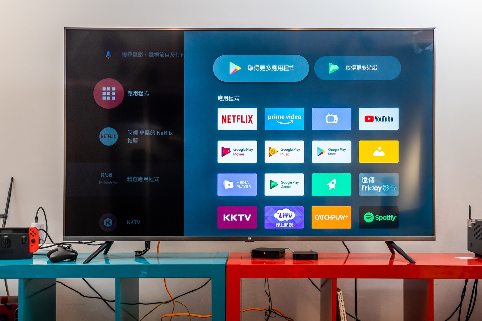 小米智慧顯示器 65 型的作業系統是目前相當主流的 Android TV 9.0,內建安卓系統的電視有什麼好處呢?就是會有大家都已經非常熟悉的 Google Play 服務能夠使用,能夠下載到許多 Google 認證的 APP,像是近期很紅的狂野飆車 8 賽車遊戲也都能夠下載的到;大家都能夠為自己量身打造一個自己最喜歡的影音內容,並且使用介面也能夠支援大螢幕的電視設計,設計介面也是方塊式的排列,簡潔明瞭也不失美觀。