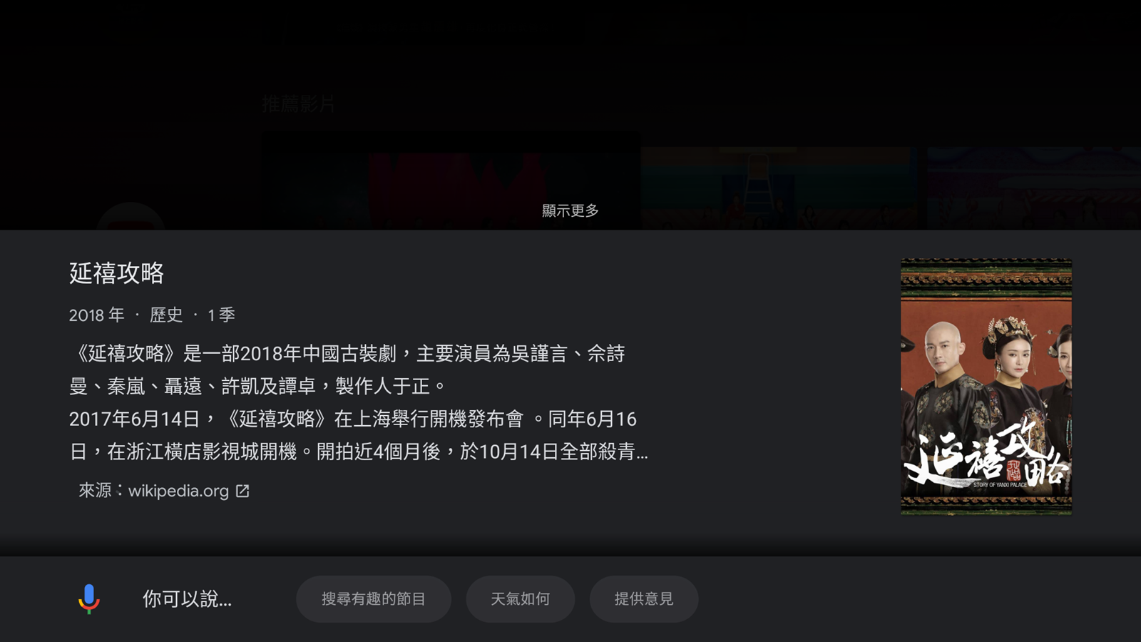像阿輝就對著遙控器說了『攻略』,小米智慧顯示器就馬上替阿輝搜尋出這兩年非常紅的連續劇『延禧攻略』的搜尋結果,不過其實阿輝想看的應該是遊戲攻略的內容吧 XD,阿不是啦,回到正題來說是小米電視的遙控器是『聽得懂人話』可以輕鬆使用的傳聲筒唷。