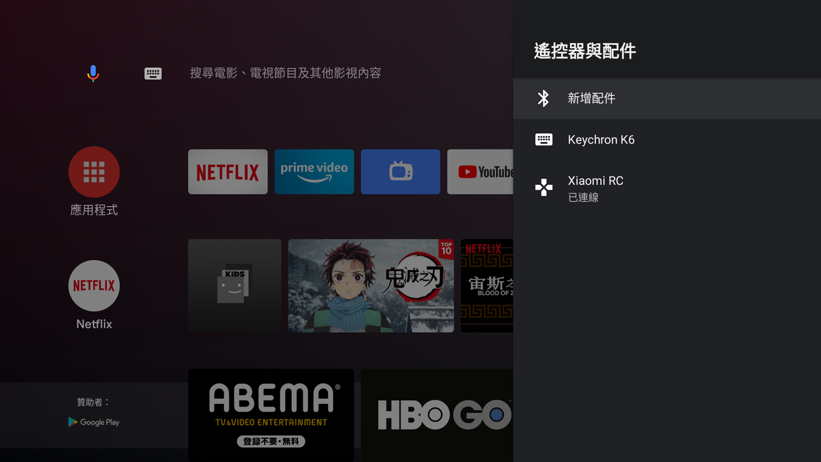 如果想要在小米智慧顯示器上使用自己的藍牙鍵盤或是其他周邊也是沒有問題的,從遙控器與配件中就可以做新增,這邊當然也還能用來新增其它遙控器或者是其他智慧裝置。