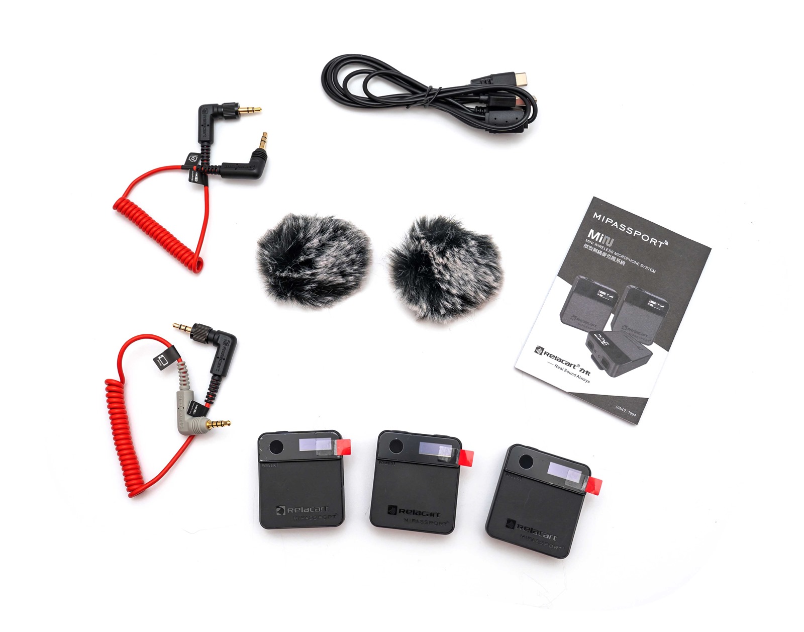 配件部分 MI2 也是給的很齊全,一台主機與兩組麥克風,同組降風噪兔矛、一對三的 USB C 充電線材、對應相機與手機使用的連接線材也都有一併附上,比較可惜大概就是沒有附個攜行袋自己要準備。