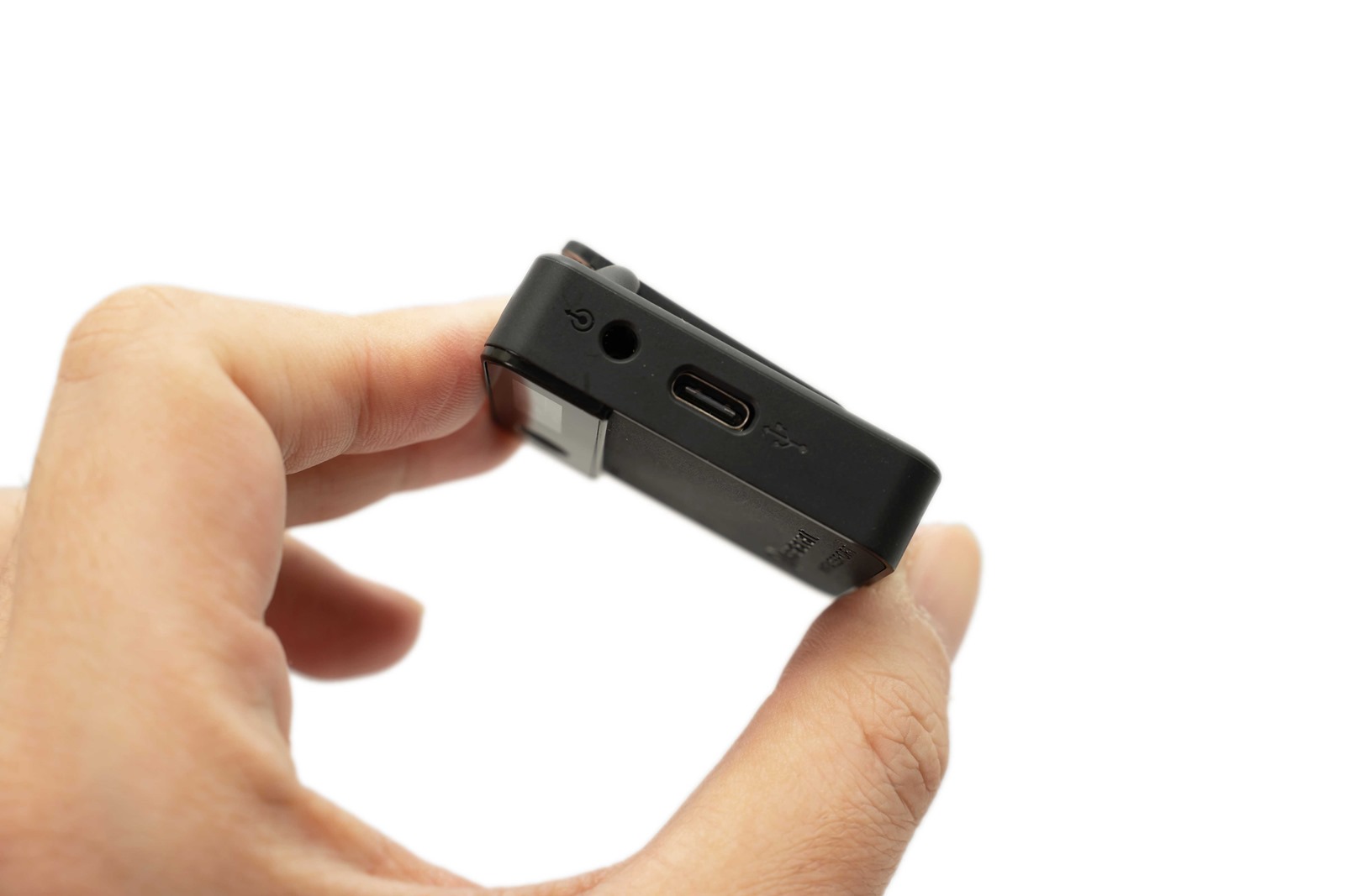 主機上的話是一組輸出連接到相機/手機的 3.5mm 接口,並採用 USB C 作為充電接口,內建鋰電池充滿電約可以使用 7 小時電力可以說是非常強,並且如果真的沒電也可以邊連接行動電源等外接電源邊使用,不過力卡 MIPASSPORT MI2 主機端並沒有監聽耳機接口,因此最好相機上要有耳機監聽接口會比較方便。
