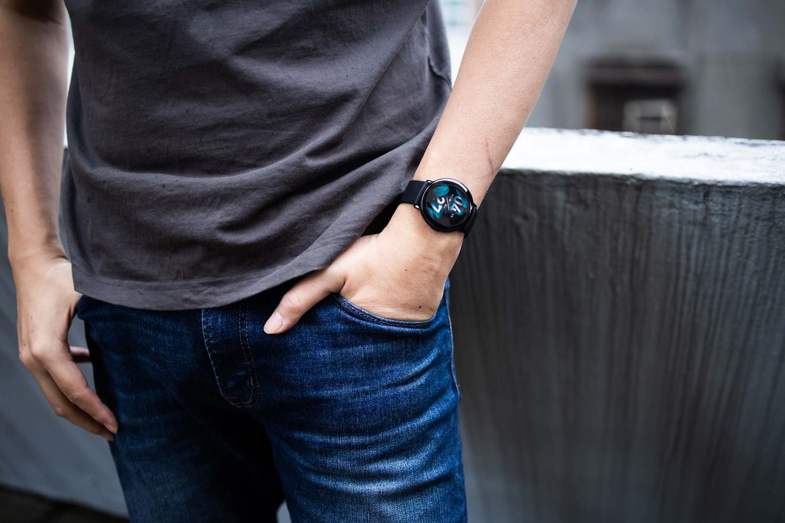 Zepp E 超薄金屬錶身、 3D 曲面無邊界設計,可客製化多變搭配,阿輝手上的是圓形表面,官網還有方形可選。