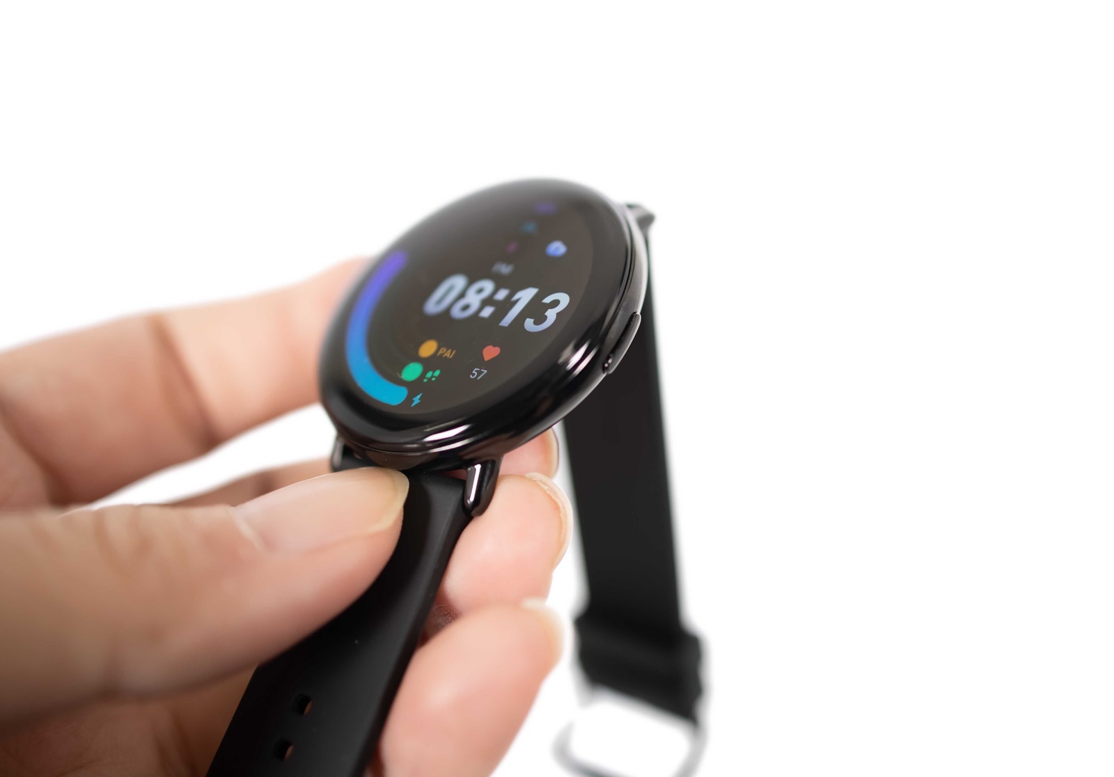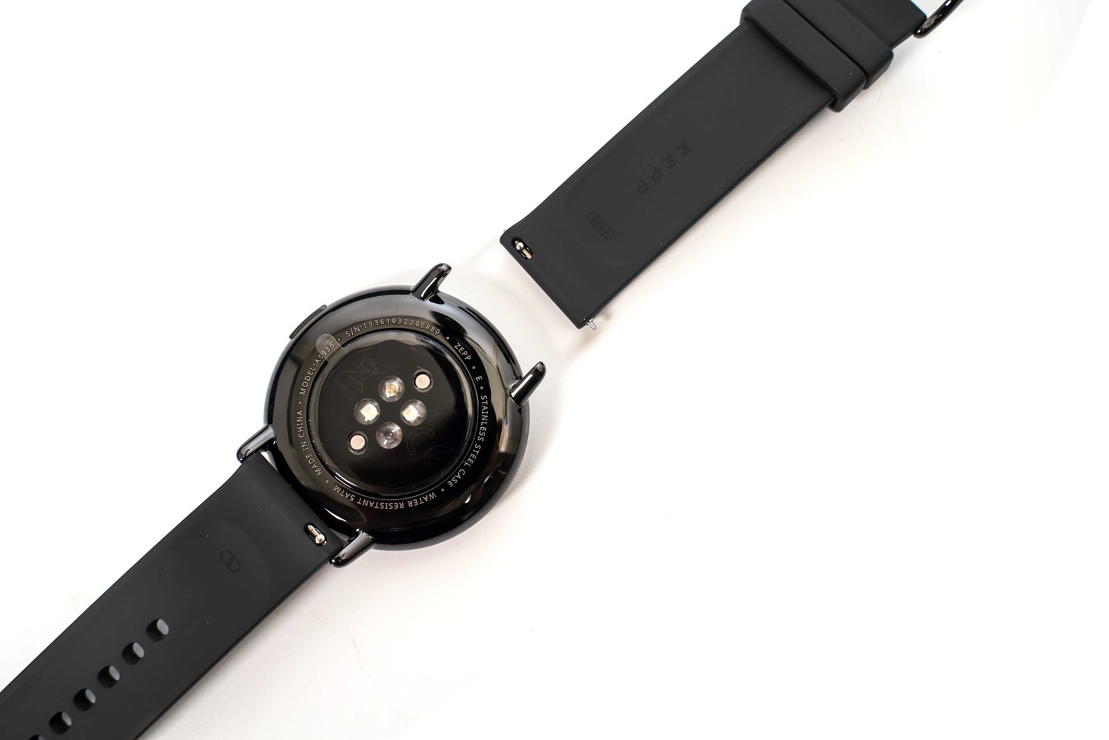 而且錶帶有金屬、皮革到氟化橡膠可供挑選,值得一提的是,一般來說會比較廉價、年輕感的橡膠錶帶,在 Zepp E 上也顯得質感相當高。