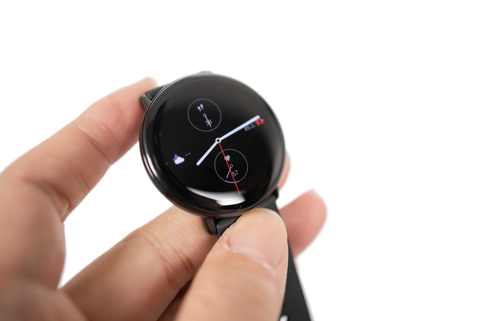 Zepp E 圓形版根據官網,以永恆之圓為設計靈感,鑄就了渾然一體的機身,使每一束光線和陰影在 3D 錶盤上流動——柔美、迷人;這段描述完全不誇張,它的確有這種介於虛幻跟真實之間的美感:有直徑 1.28 英寸圓形 AMOLED 螢幕 解析度 326 ppi 螢幕。