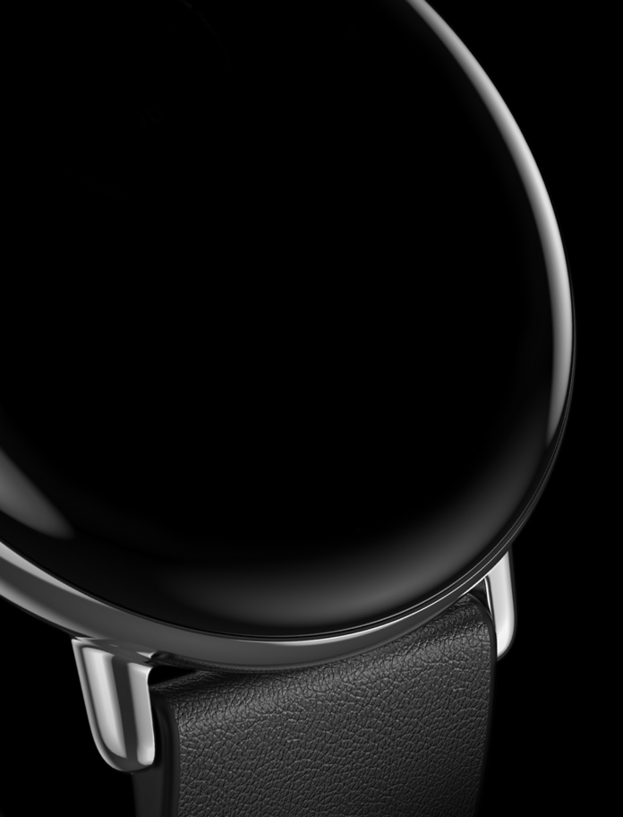 精雕細琢的純黑色 3D 弧形無邊框玻璃,外形無懈可擊,從各個角度欣賞都具有平滑的線條,從而獲得精緻、令人難以置信的時尚外觀。 3D 玻璃和拋光的不鏽鋼後蓋完美融合,讓手錶既時尚又超薄。厚度只有 9 公釐,日夜佩戴都非常舒適。