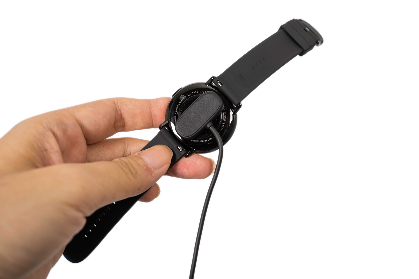 想充電時只要將 Zepp E 對準接點即可,磁吸的設計可以讓手錶與充電座妥善貼和。