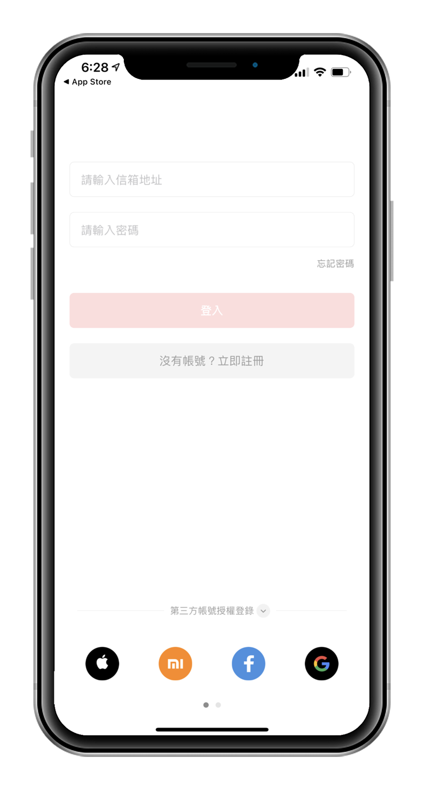 下載 APP 打開後,可以申請帳號也可以直接使用現有的社群軟體登入。