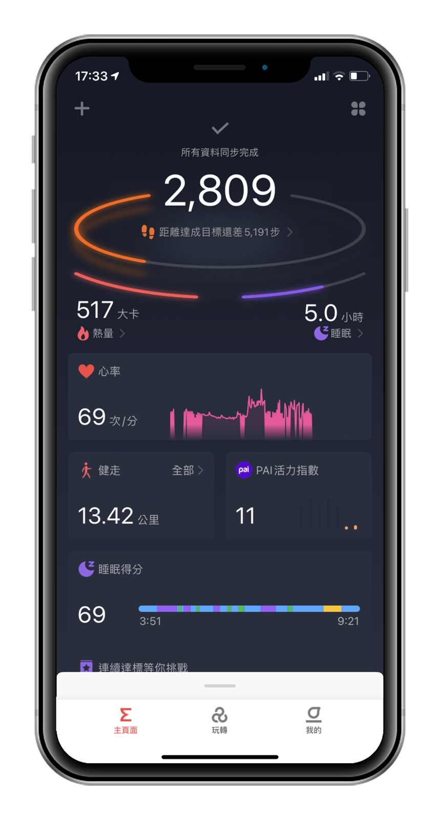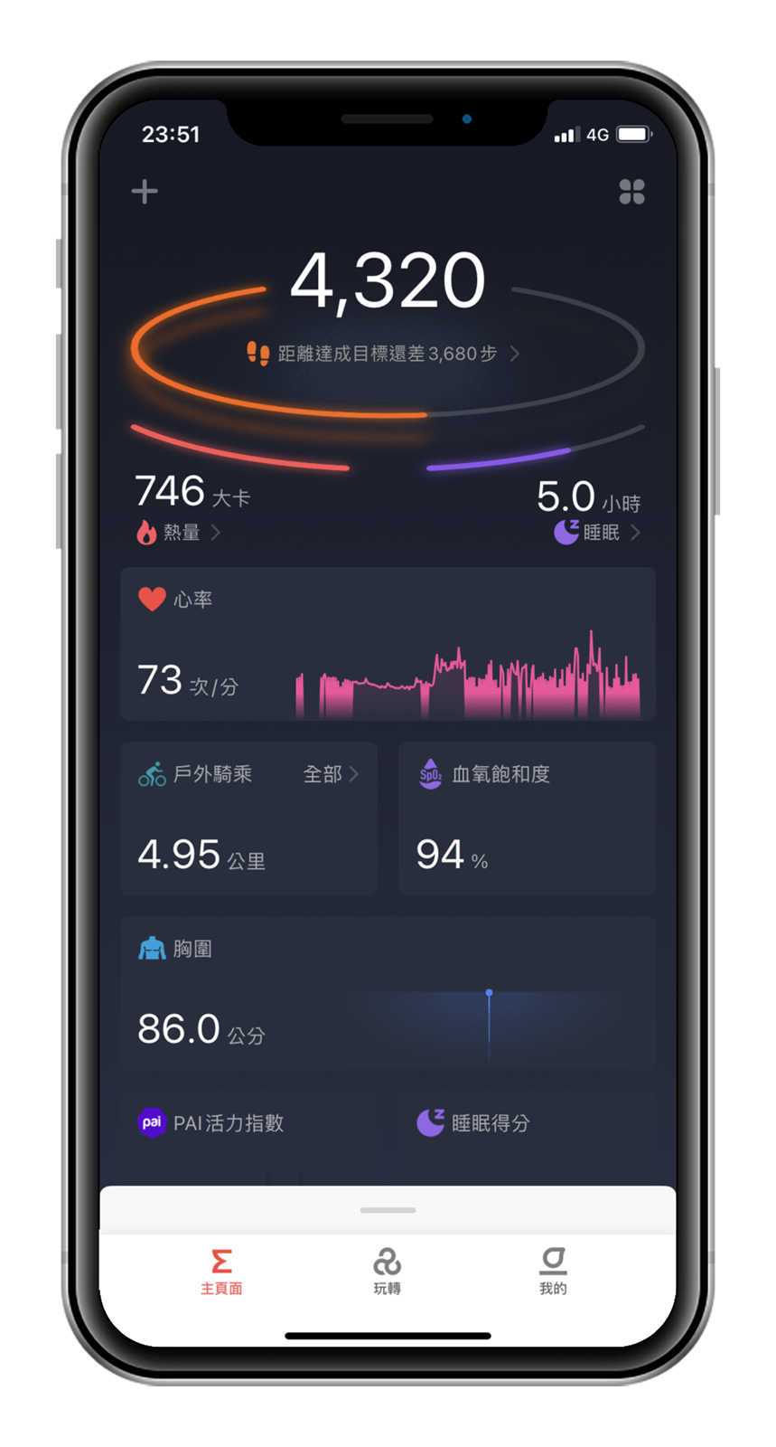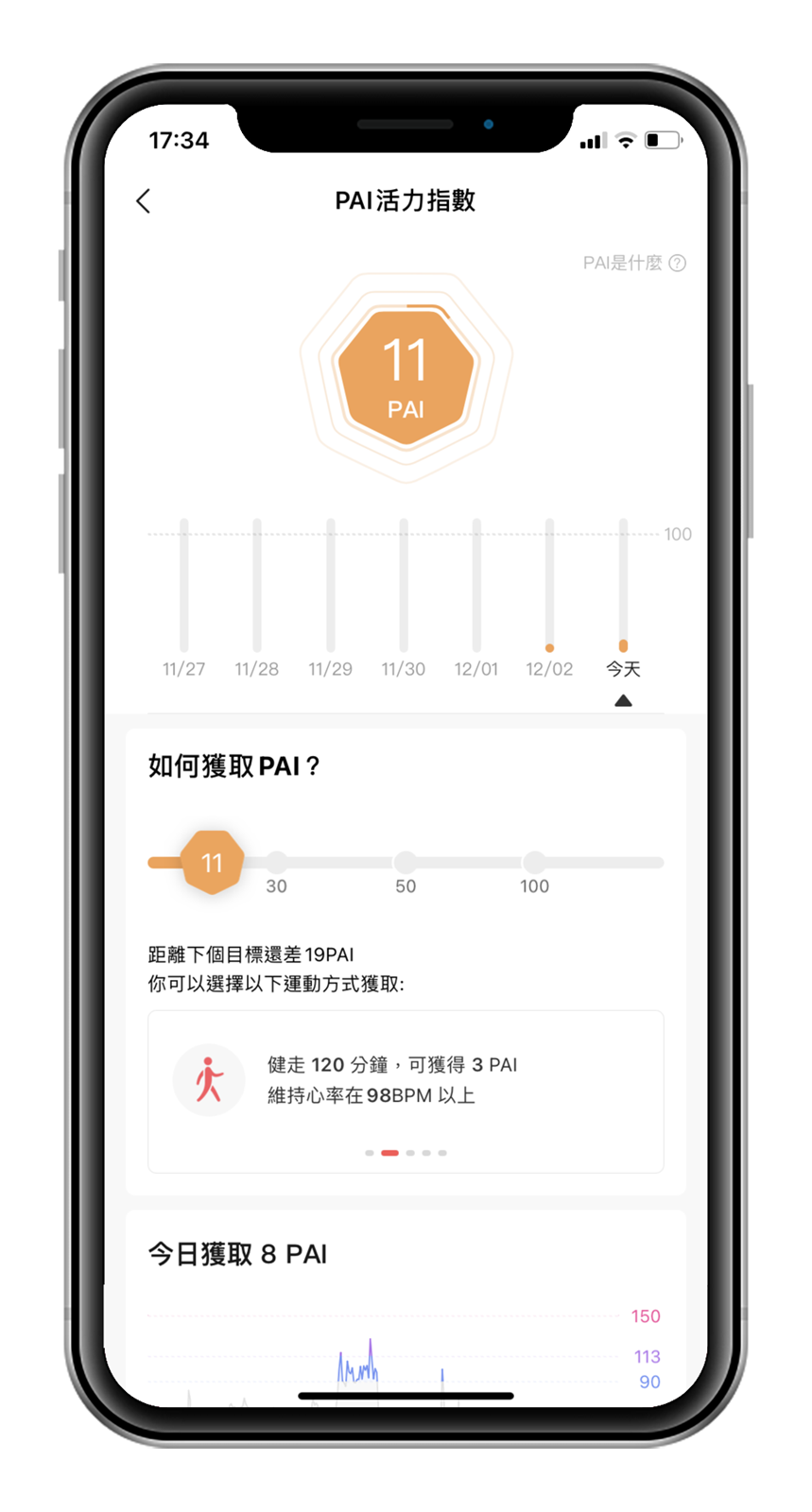 至於剛剛在錶盤介面上看到的 PAI 一定讓大家霧煞煞!在 APP 介面中有針對它做詳盡的解釋。簡單來說就是透過達成某些目標而取得的活力點數,也能把各種不同運動的時間、心律狀態或是強度做一個統整性的量化,用來判斷當日的活力狀態。