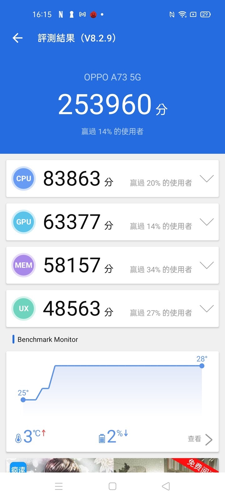A73 採用天機 720 處理器與 8GB 內建記憶體的規格配置,更多資料也可以阿輝資料庫 https://reurl.cc/MxdjK 內有大量阿輝多年測試手機/平板的實測數據,可以給大家作為對照參考使用。
