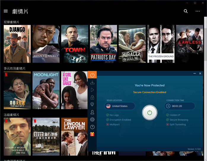 Ivacy VPN 到美國伺服器,可以看到下面的 Patriots Day 愛國者行動,你在台版 Netflix 是找不到的,很令人驚訝的是 Ivacy VPN 對於 Netflix 的最佳化可以順暢的即時播放而不會像其他 VPN 時常碰到需要緩衝中斷了觀看的順暢感,這點對於 Netflix 重度用戶的阿輝來說 Ivacy VPN 這一點實在太加分!