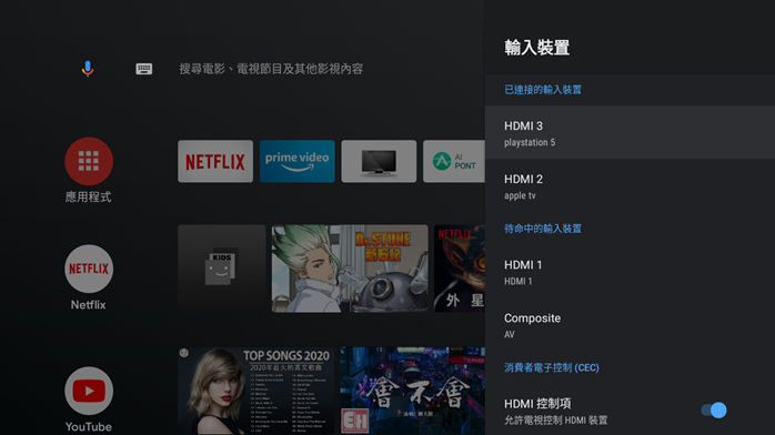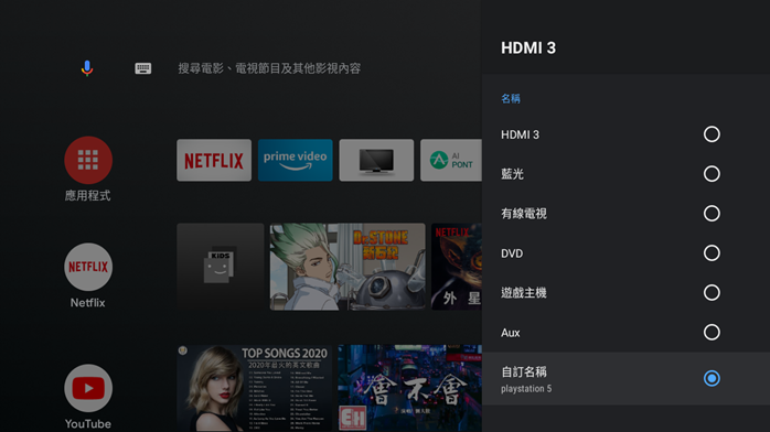 像阿輝就把幾乎會常駐的 apple tv 和 PS5 都做了獨立命名,可以選用的輸入來源頻道便一目瞭然,打電動的時間珍貴需好好把握,當然是每一分一秒都不能浪費在搜尋輸入來源的時間上!