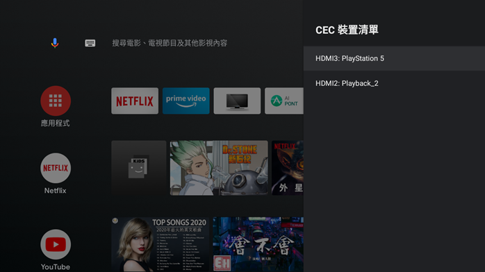 - 內建 Android TV 9 作業系統、內建 Netflix 、 YouTube 、 Prime Video 等常用影視軟體
