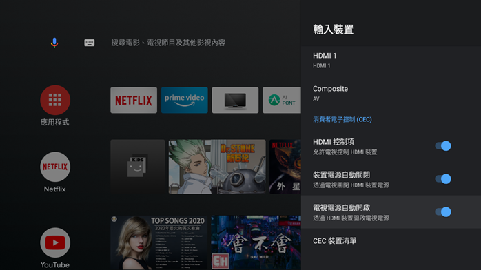 在消費者電子控制 (CEC) 的項目裡也可以設定不同輸入來源的裝置電源開關設定,透過這個功能可以決定是否透過開關電視的同時自動開啟或關閉輸入裝置的電源,例如玩完 PS5 後關電視就自動也把 PS5 的電源關閉,就不必再多一道去關閉 PS5 的動作;又或者把這台螢幕是放在遊戲間中專門用來打電動專用的家中第二台螢幕,也就可以設定他開機的同時就自動打開 PS5 電源,馬上開始享受大男孩的快樂時光。
