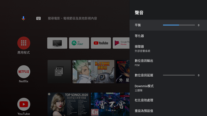 例如聲音的左右平衡、或是數位音訊延遲的調整,有時候覺得自己看的電影聲音和畫面搭不上的時候或許就可以用到這個功能來做微調。