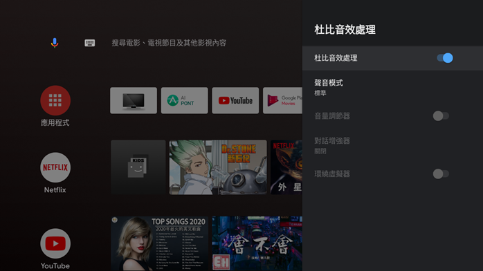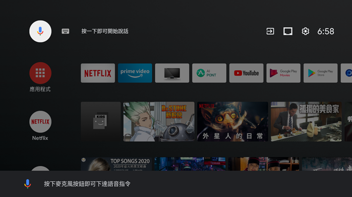 並且遙控器還支援 Google 語音輸入,是阿輝最喜歡的操作方式『出一張嘴』,按一下音量鍵中間的 google 圖示就可以開始對著遙控器說話執行語音指令,用來輸入搜尋內容或尋找 APP 都非常方便,省掉許多用遙控器慢慢點螢幕輸入的時間。