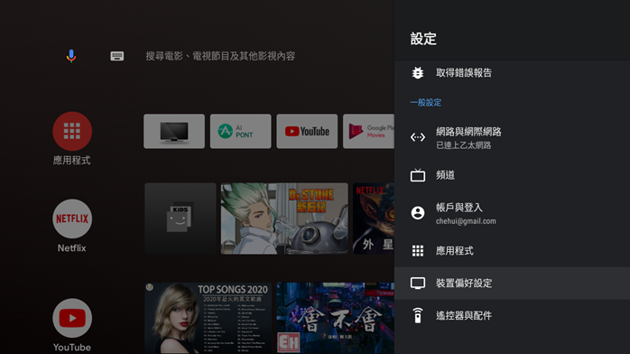 電視開啟後可以直接登入 GOOGLE 帳戶,簡單來說它就像一台電視型的手機或是平版,可以依照個人喜好做調整和增減安裝各類 APP 應用程式。