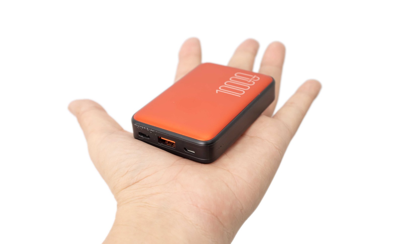 取出 QP70 本人之後,真的輕巧又迷你,而且與某名牌的過夜包的確有相同的卓越設計,金屬外殼提供了高級、科技質感,磨砂感的手感與視覺效果都非常出色,帶來截然不同的光澤層次。上頭直接明瞭的 10000 也彰顯出 QP70 的特色。