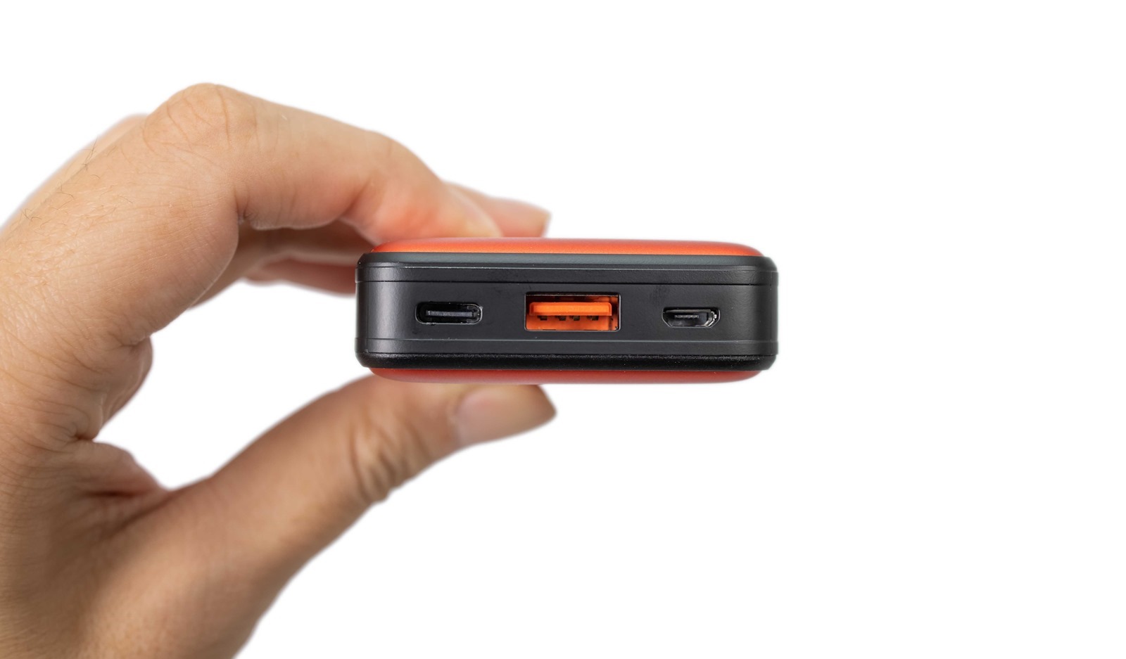 雖然整體身形小巧但一切都不馬虎,有 Type-C PD 快充、 USB A 跟 Micro USB 接頭;而且包邊精細巧致,顏色還與外殼相呼應,一樣跟黑色側邊條結構撞色設計。 QP70 有雙輸入/輸出埠,這些接口基本上可以 cover 大多使用情境,更靈活使用。