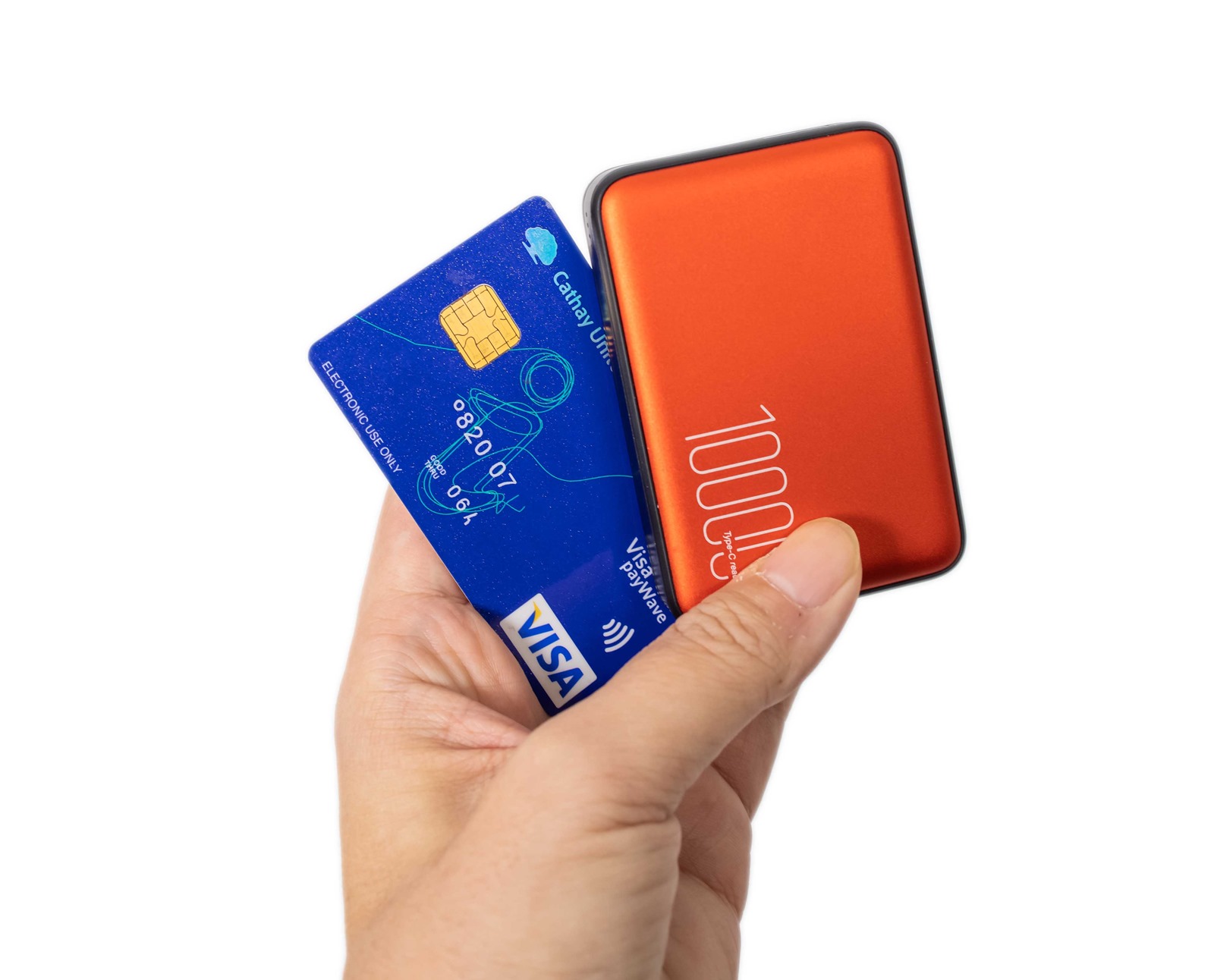 好,QP70 通過了考驗,它真的和信用卡差不多大,非常驚人的是,疊在一起的話,QP70 甚至會被信用卡完全遮擋。