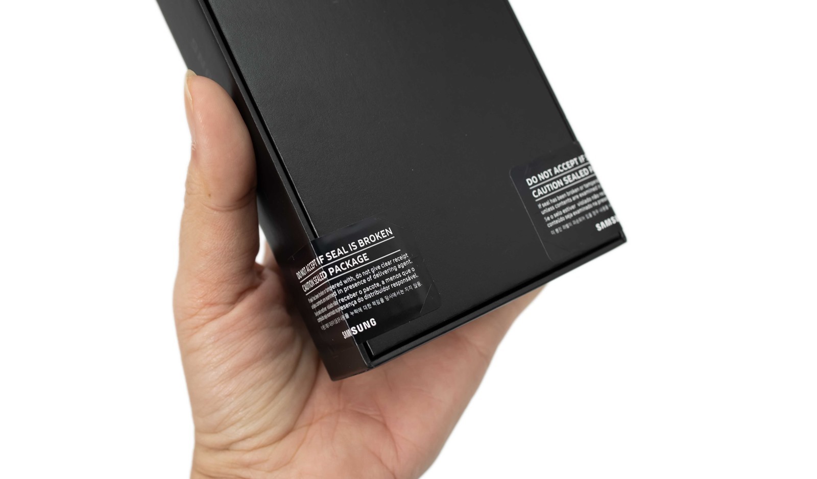 盒子也真的是瘦身超級成功,與之前 Note 20 Ultra 外盒一比幾乎是只有一半的盒子大小