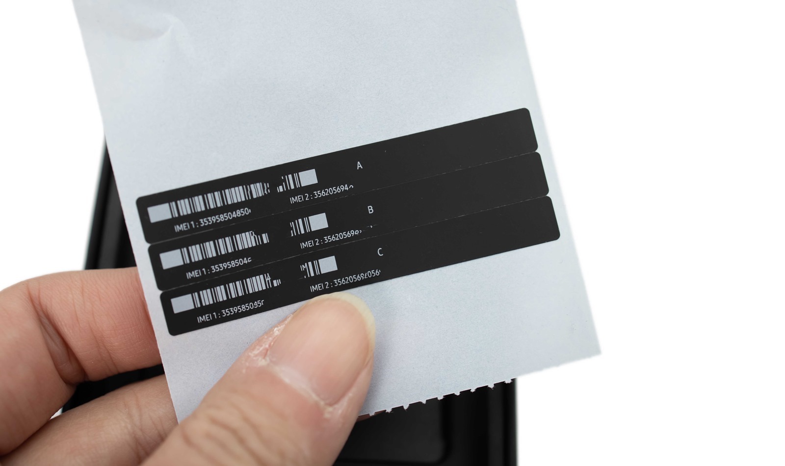 除了機背貼紙上有 IMEI 資料之外也一樣盒中有 IMEI 貼紙,IMEI 貼紙建議大家可以收好,像是不慎手機失竊或是遺失時,IMEI 資料可以作為報案與後續追蹤使用的可能