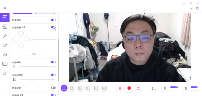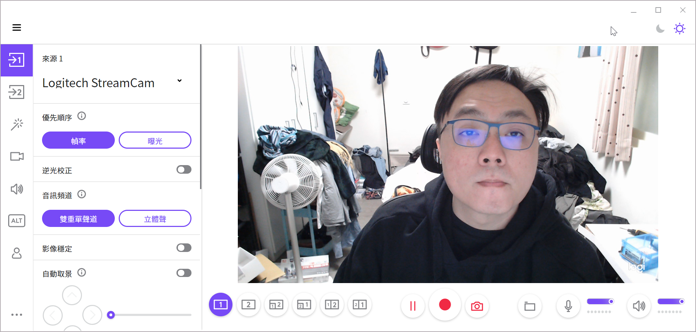 接下來就要介紹 StreamCam 的完美搭檔,羅技 Capture!使用簡單功能強大,搭配起來能有自動曝光、取景甚至防手震的功能。