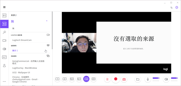 開會的時候就可以一邊開視訊,一邊選取想要使用的簡報,除了看得到臉也能一面確認簡報內容。只要按下左列的箭頭 2 就可以選擇第二畫面的來源,使用上非常簡單。