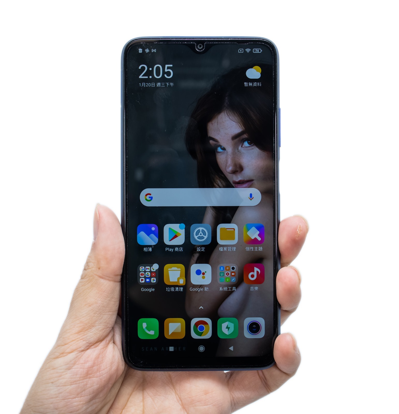 - 6.53 吋 LCD 水滴螢幕、 2,340x 1,080pixels 解析度、 NTSC 70%色域、螢幕佔比 90.34%,表面覆蓋康寧第三代大猩猩強化玻璃,通過德國萊因 TÜV Rheinland 低藍光認證