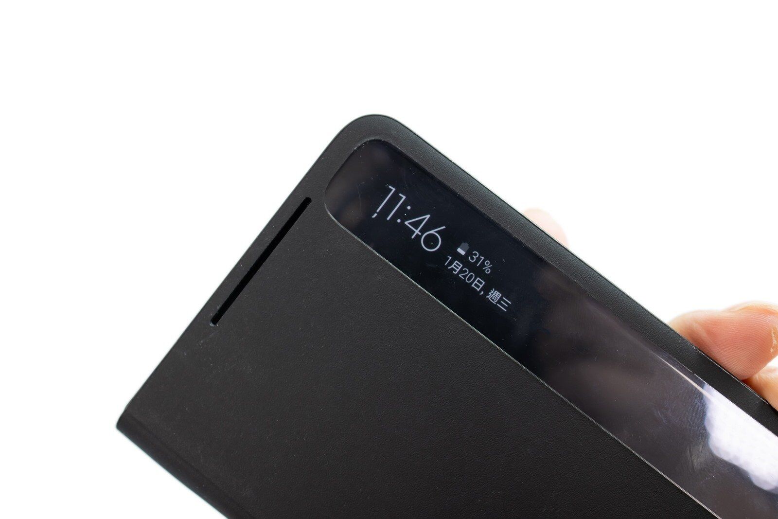 今天分享的翻蓋式保護套在正面設計了一整條透明欄,手機裝上時會自動顯示對應的資訊內容