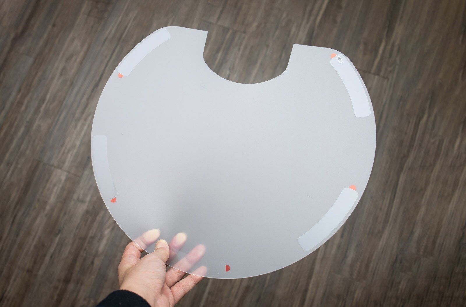 設定好充電座的位置後,就可以將防水墊底部的雙面膠撕開貼在地面上做使用,如果是使用木質地板的話特別建議要搭配使用來給地板多一層保護。
