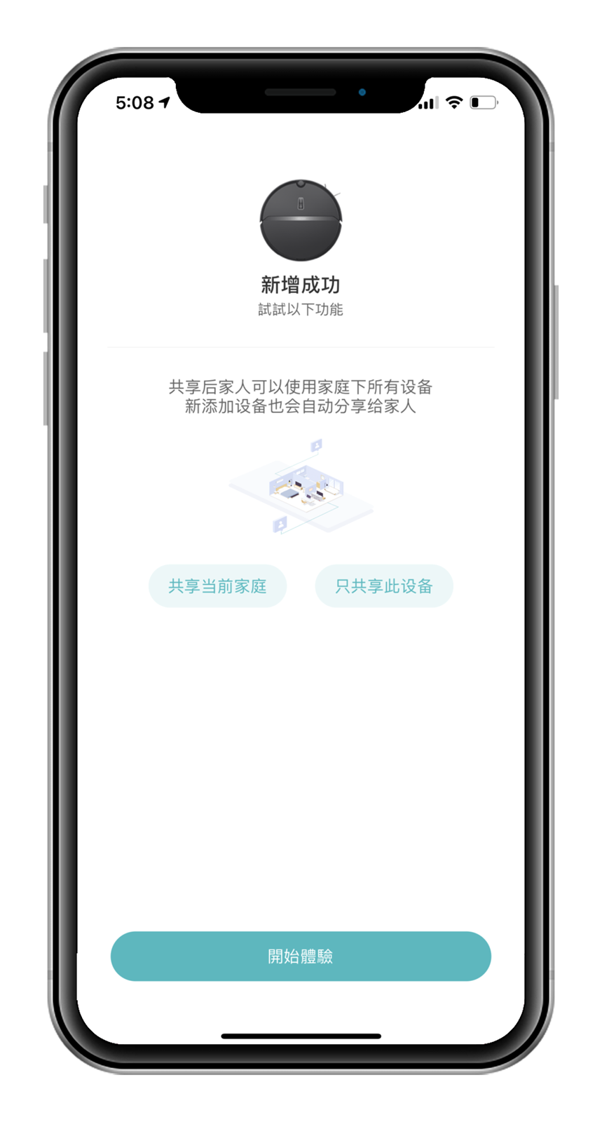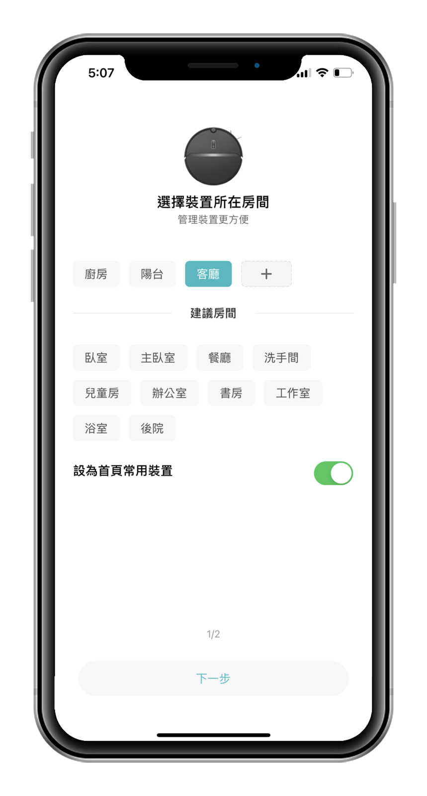 載入完成後就可以開始進行 ROBOROCK E4 的裝置設定,如果有些人和阿輝一樣家中有不止一台掃地機器人分配在不同的房間工作的話,就可以設定 E4 掃地機器人希望指定它打掃的常用房間位置,也可以為掃地機器人自行命名,阿輝很沒創意的就是只稱呼他的本名叫 E4,設定完成後也可以把這個設備分享給同住的家人,不只自己可以管理掃地機器人出來工作的時間,女友或室友當然也都可以一起加入管理設備的人