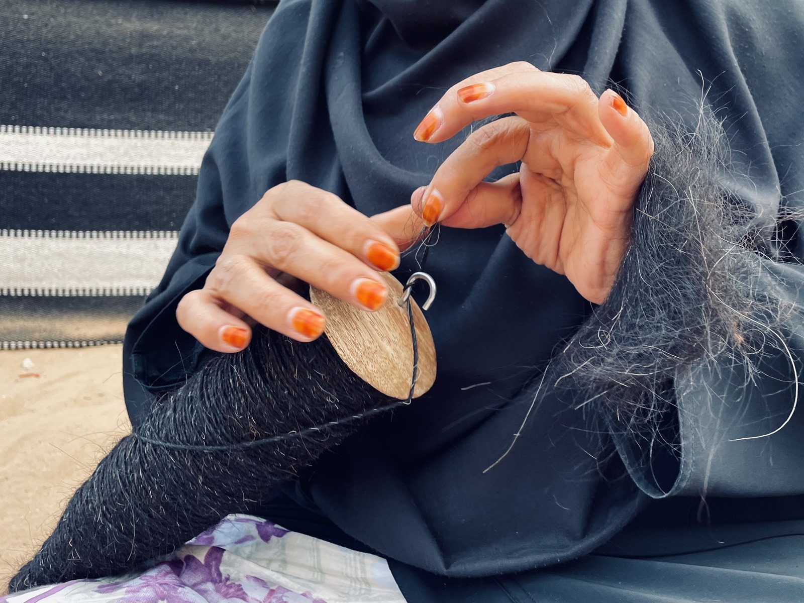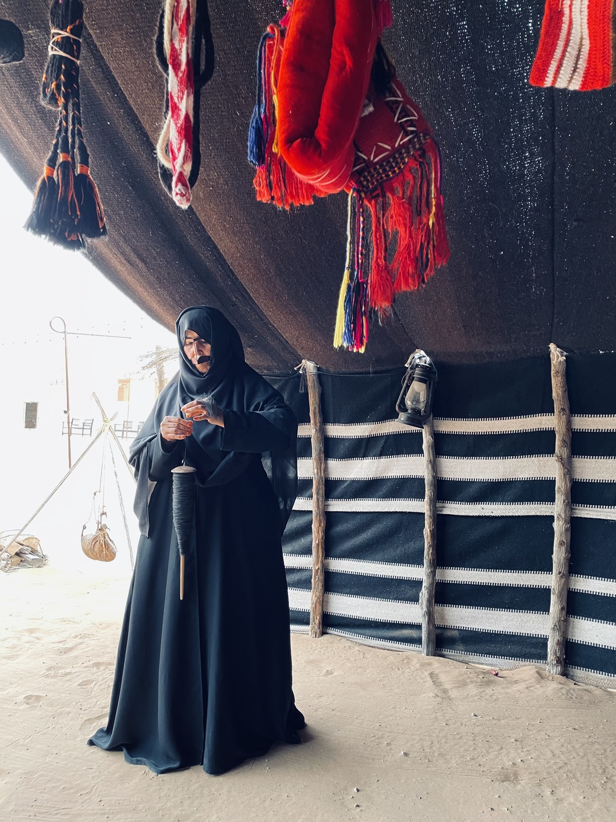 • 在充滿未來感的杜拜都會裡,Bedouin 婦女有一段深不為人知的過往。她們隨著季節變化在遼闊的沙漠中旅行,上天下海。母親將 Ghazel 手工藝技法傳授給女兒,她們會用綿羊毛製作 Bait Al Sha’ar 的房屋、毯子等物品,這使阿聯酋的文化得以留存。」