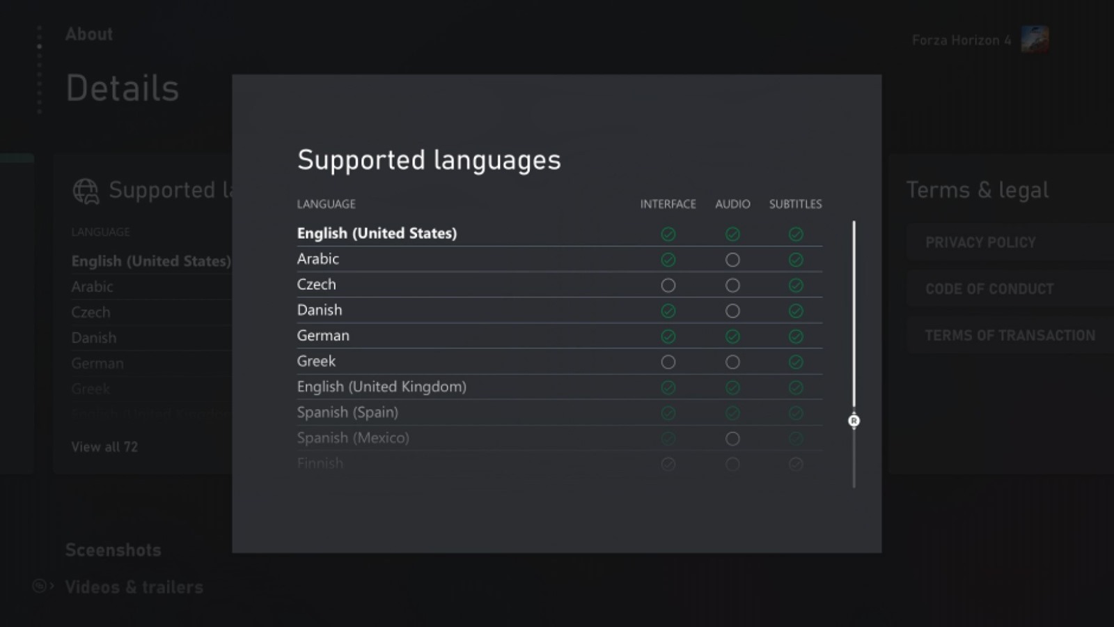 將玩家放在首位,是微軟 Xbox 一直以來不變的初衷。除了持續加入火熱的遊戲陣容,玩家現在能透過新增的語言標籤 (Languages label) 功能,輕鬆辨別遊戲內容是否支援特定語言。語言標籤支援遊戲體驗的三個元素——遊戲介面、遊戲語音和字幕,共涵蓋 27 種語言。微軟 Xbox 已經為數百款遊戲增設了語言標籤,並將會致力於持續讓遊戲語言標示的功能更加完善。