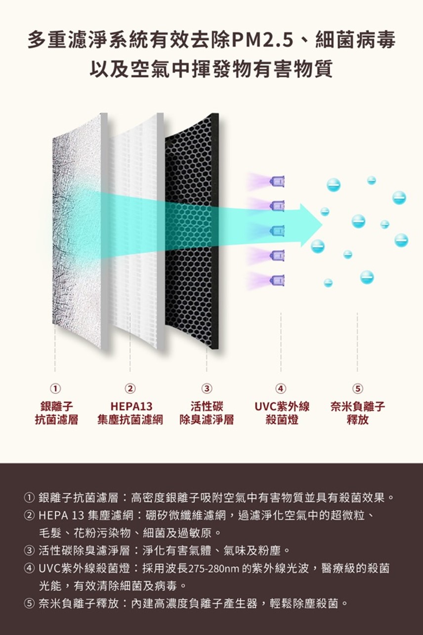 LaPO UVC 殺菌光負離子 HEPA 空氣清淨機 奈米級濾網!內外兼具經濟實惠,複合式濾網搭配 UV 燈讓病菌、髒污、臭味無所遁形