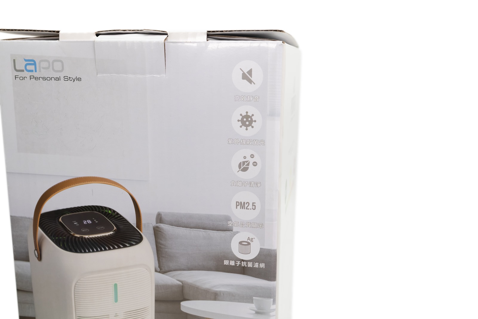 外箱跟包裝都相當精美,LaPO 本人也俏麗高質感,而且造型優雅有美感,不管是哪一色都充滿無印良品的簡約設計風,還輕巧便攜,不用擔心想要更換使用空間,需要辛苦的推來推去,或是使力搬移。但其實除了外型卓越、小巧方便之外,它作為空清機的實力也無比強悍!下面就來慢慢介紹。