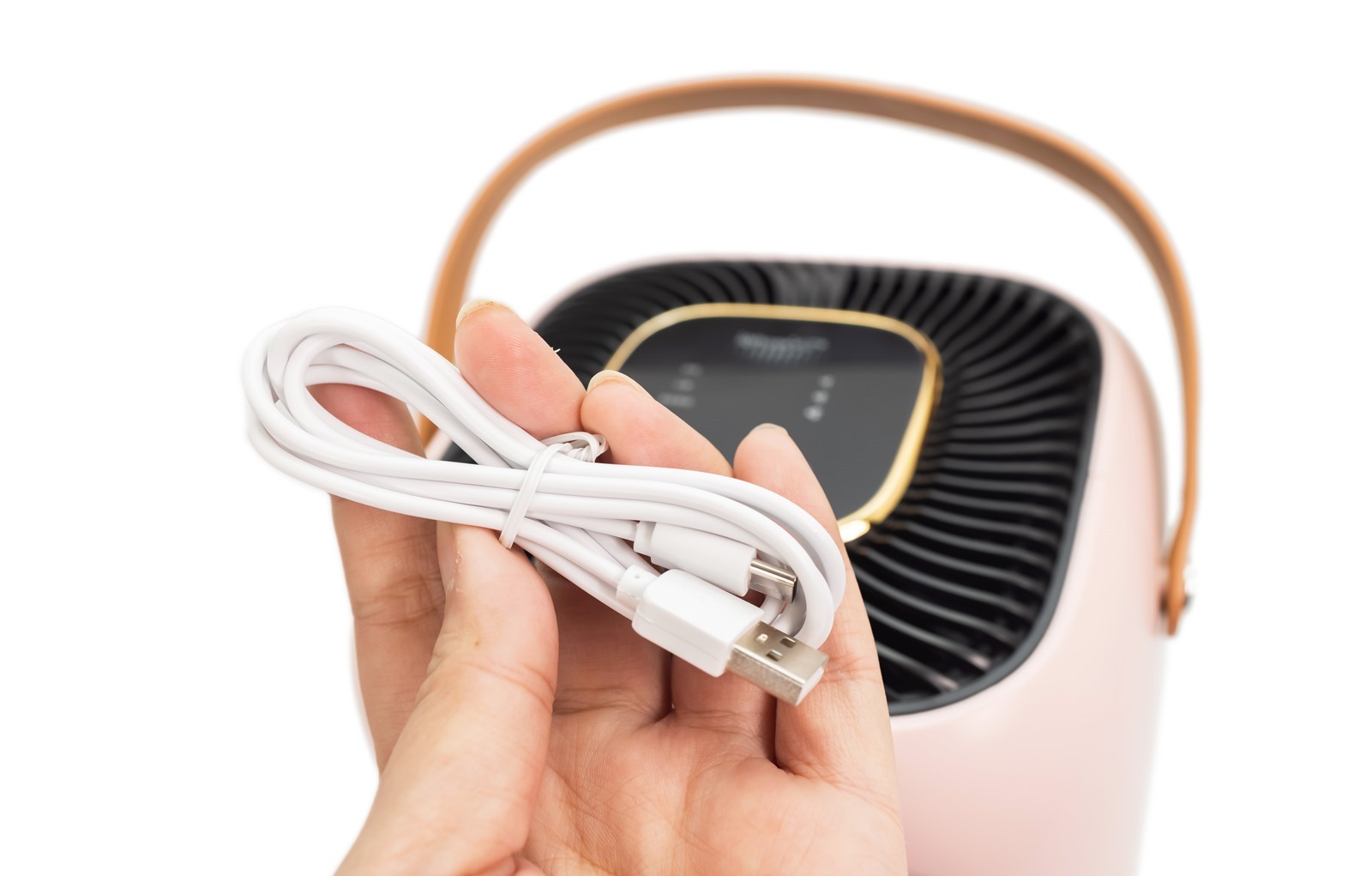 最棒的是,只要用充電線即可供電,不管是 Type C 或是家裡人手一條的 Type B 都可以用來餵飽 LaPO,跟難處理又難收納的特規傳統充電器說再見;還可以用行動電源供電,完美解決電線的收納與牽線問題,不用的時候它就是可愛的小擺設,電線通通收起來;要用的時候就直接接著行動電源也沒問題,非常方便!